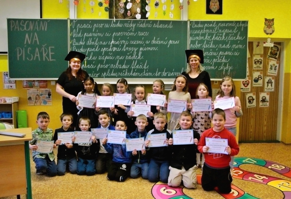 Žáci I. B byli za přítomnosti svých rodičů oficiálně pasováni na písaře paní zástupkyní Martinou Linhartovou. Jako dárek obdrželi první psací pero, které všem prvňáčkům vykouzlilo úsměv na tváři. Všem prvňáčkům gratulujeme a přejeme jim mnoho úspěchů nejen v psaní, ale i v jiných vyučovacích předmětech.