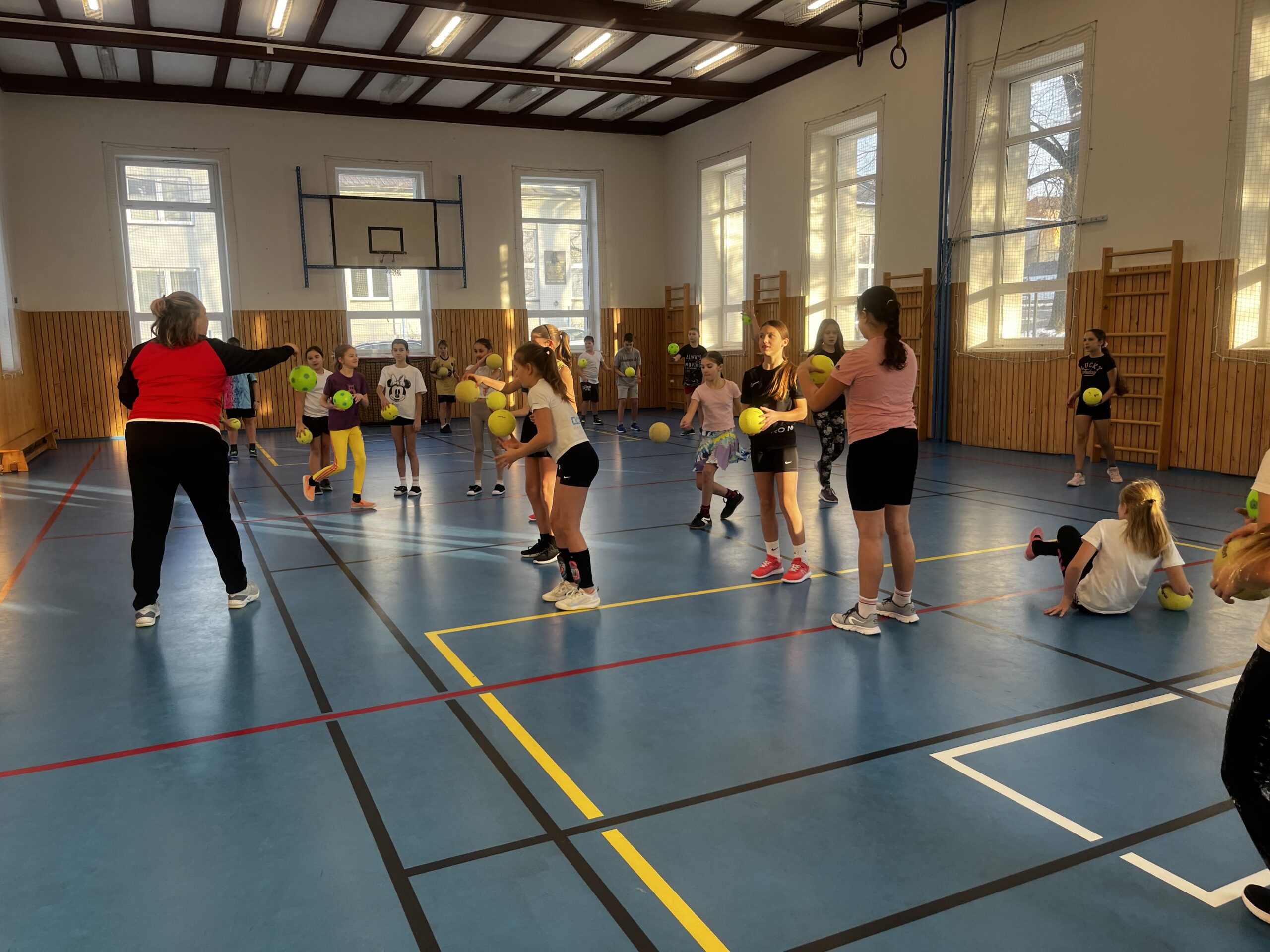 V úvodu hodiny trenérka žákům představila základní pravidla a principy házené, poté následovala praktická část zaměřená na rozvoj pohybových dovedností. Připravená cvičení podporovala rychlost, přesnost přihrávek, práci s míčem i týmovou spolupráci.
