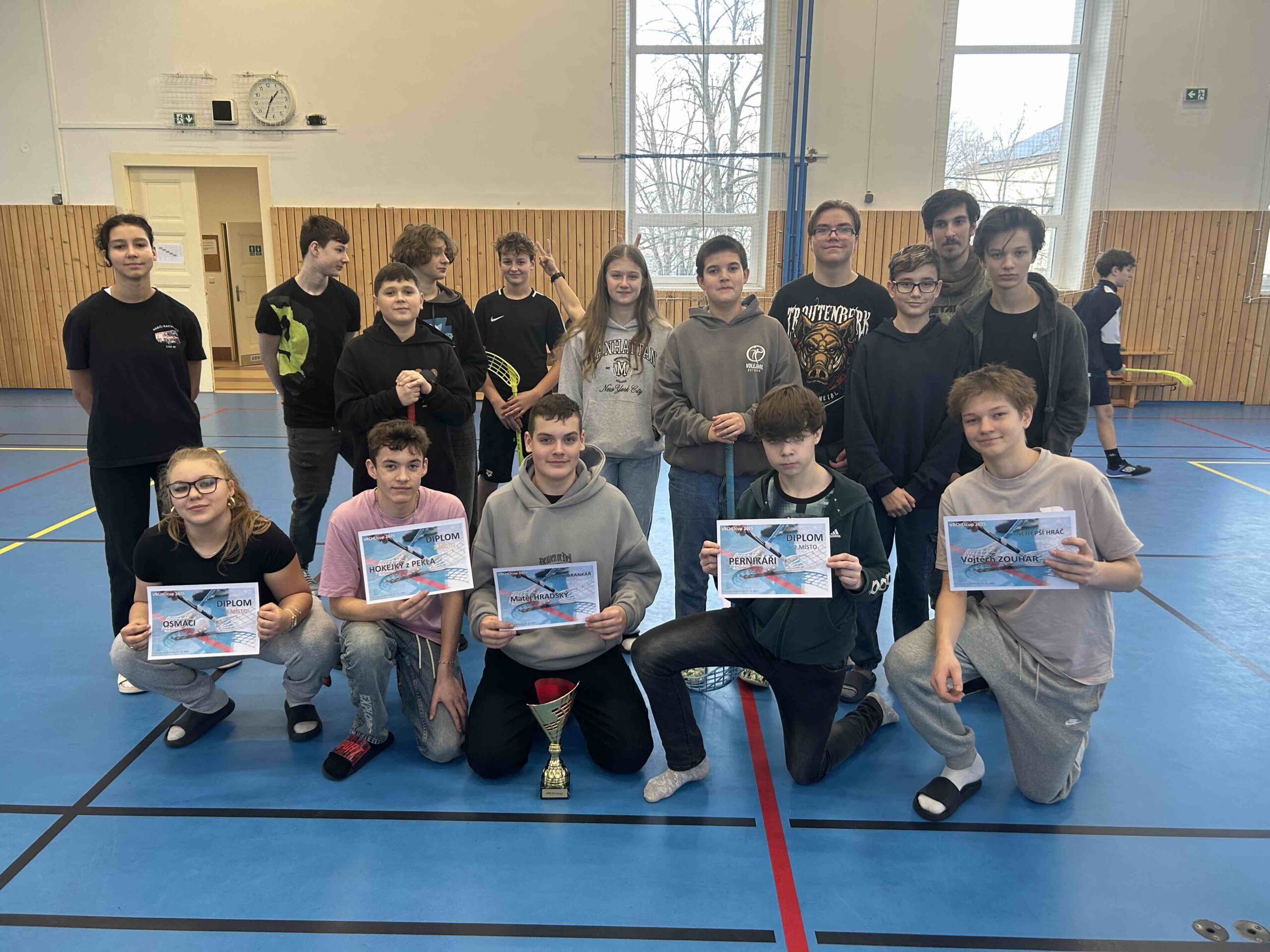 Ve středu 17. prosince se ještě před začátkem vánočních prázdnin uskutečnil na budově Vrchlického 5 florbalový turnaj VRCHLIcup 2025. Sportovní dopoledne nabídlo napínavé zápasy, týmového ducha i fair play.