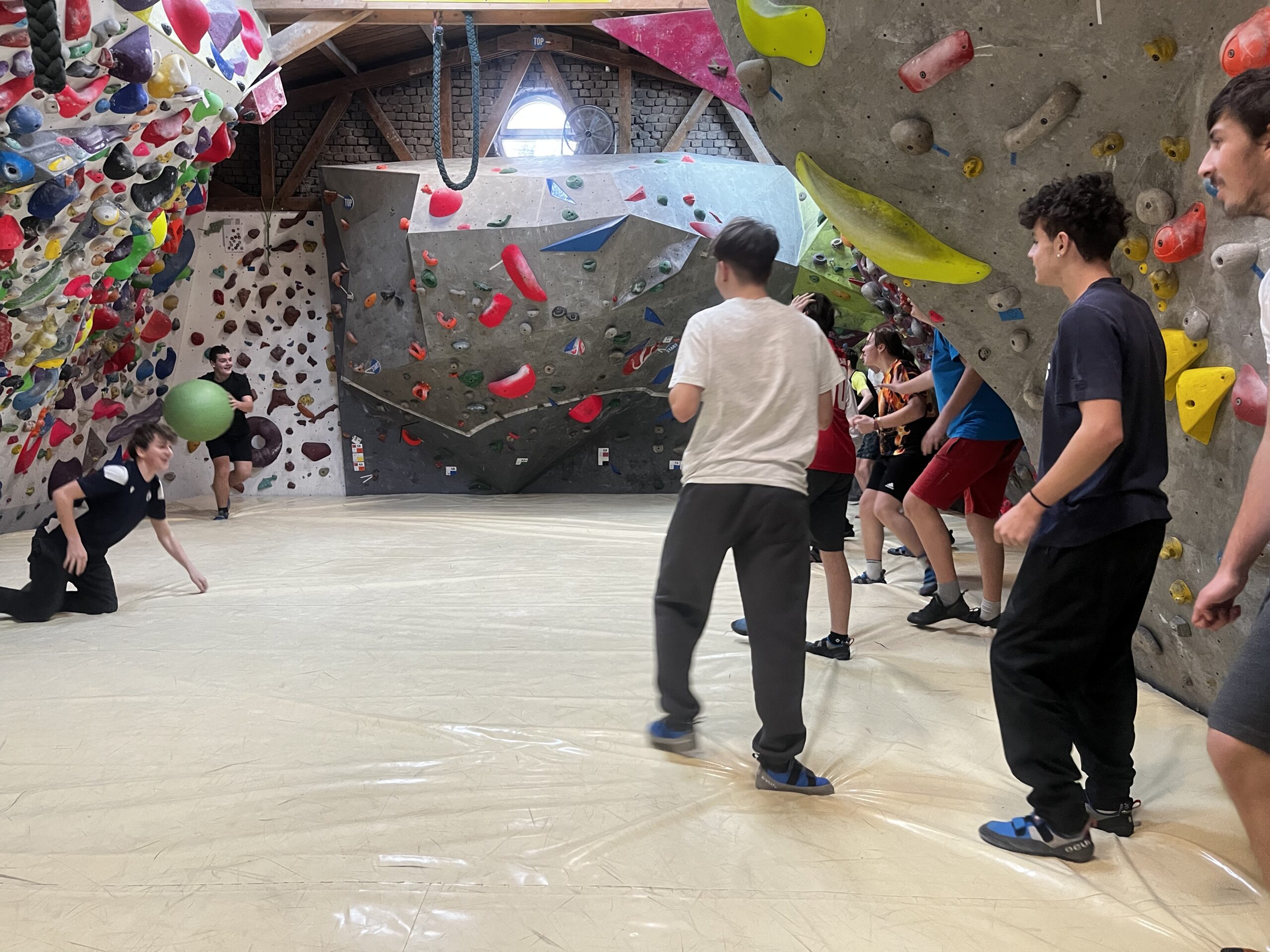 V pátek 9. ledna se žáci IX. A zúčastnili netradiční hodiny tělesné výchovy, která proběhla v lezeckém centru Tendon blok. Pod odborným vedením zkušených instruktorů si vyzkoušeli bouldering – lezení na nižších stěnách bez jištění lanem, při němž je kladen důraz na techniku, koordinaci a promyšlený postup.